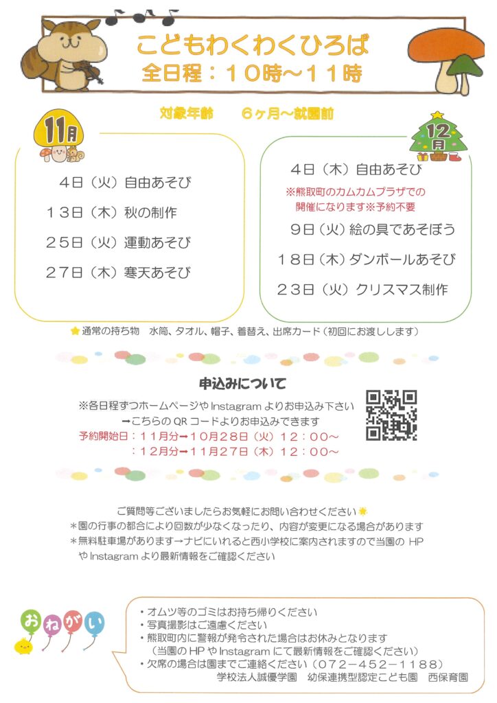 ※12月4日(木)自由あそびは熊取町かむかむプラザで
